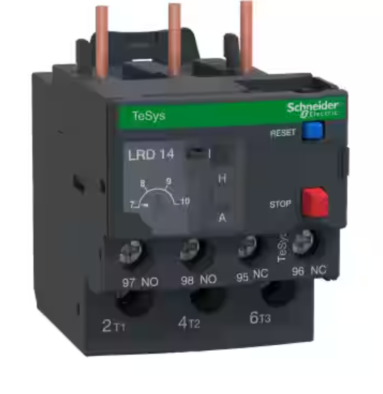Przekaźnik przeciążeniowy cieplny TeSys LRD 7-10A zaciski skrzynkowe o numerze katalogowym LRD14. Produkt wyprodukowany przez markę SCHNEIDER ELECTRIC.
